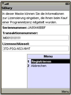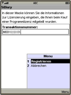 SiDIary Java-Handy mit Transaktionsnr. freischalten