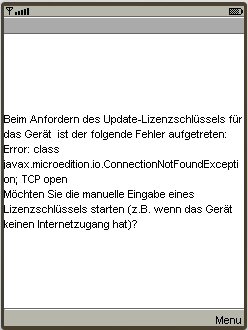 Rufen Sie auf dem Java-Handy den Programmpunkt 'Über' auf (Menü ->Navigation ->Über) und drücken Sie dann auf 'Menü ->Registrieren':