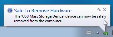 On Windows 7 you will find the symbol for removing hardware safely in the systray too: