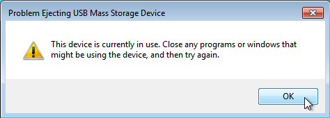 In this case you could leave the stick in the USB-Port and shut down your PC. Then you can remove the stick safely.