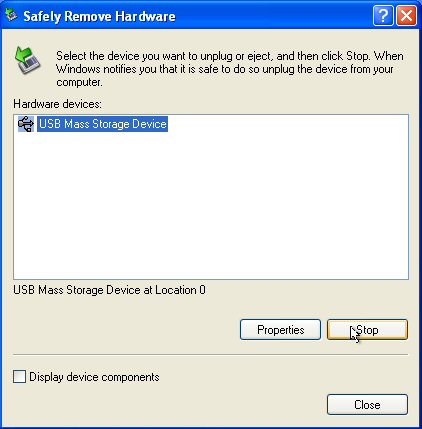 Terminate the program. Doubleclick with your left mousebutton the symbol 'Safely remove hardware' in your systray: