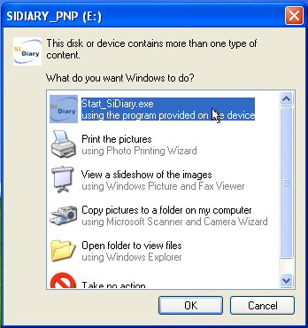 Just select 'Start_SiDiary.exe' and click on 'OK'. The programm will start then.