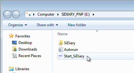 With a doubleclick on 'Start_SiDiary' you can start the program on your USB-Stick.