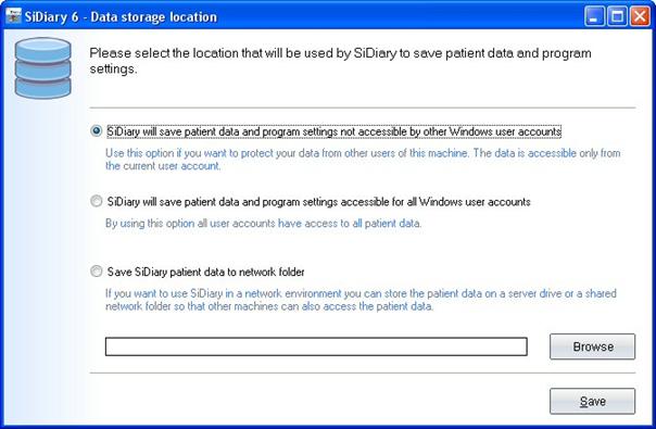 you can define where SiDiary stores your data. After clicking on Data storage location you will see this