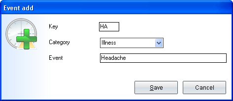 enter an abbreviation for your new event in the field Key. In the detail-logbook you can select your events right to the